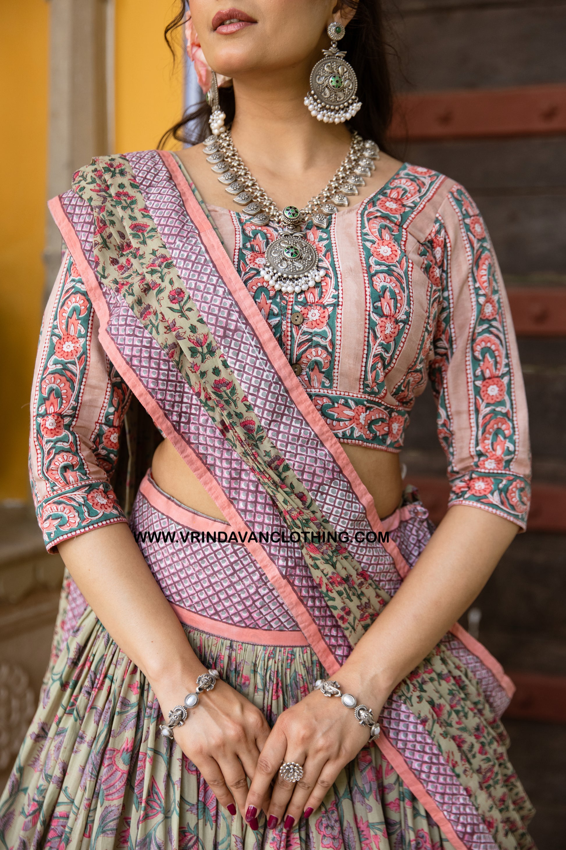 Immerse yourself in the divine elegance of our expertly handcrafted Gopi dress set, made from high-quality, breathable cotton for unparalleled comfort. Each piece is meticulously handmade and dyed, showcasing vibrant colors that radiate the joy and beauty of Krishna's love, perfect for elevating your Kirtan dance performance, spiritual gatherings, or everyday wear. As you adorn yourself in this stunning outfit, embody the divine feminine, embracing your inner Radha, and connect with the sacred land of Vrindavan, where love and devotion reign supreme. Let our enchanting Gopi dress set transport you to a realm of spiritual bliss, inner peace, and divine connection.