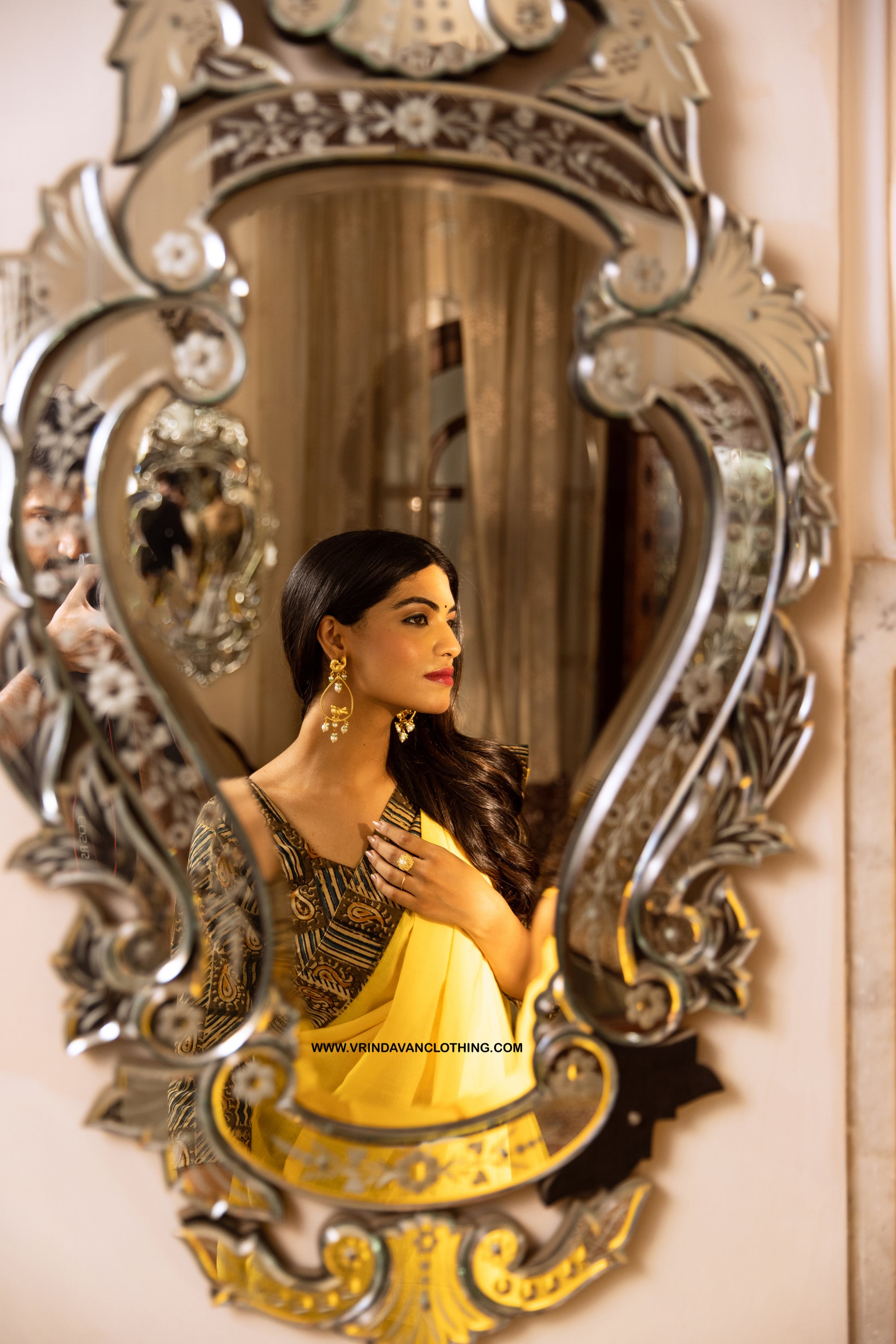 Immerse yourself in the divine elegance of our expertly handcrafted Gopi dress set, made from high-quality, breathable cotton for unparalleled comfort. Each piece is meticulously handmade and dyed, showcasing vibrant colors that radiate the joy and beauty of Krishna's love, perfect for elevating your Kirtan dance performance, spiritual gatherings, or everyday wear. As you adorn yourself in this stunning outfit, embody the divine feminine, embracing your inner Radha, and connect with the sacred land of Vrindavan, where love and devotion reign supreme. Let our enchanting Gopi dress set transport you to a realm of spiritual bliss, inner peace, and divine connection.