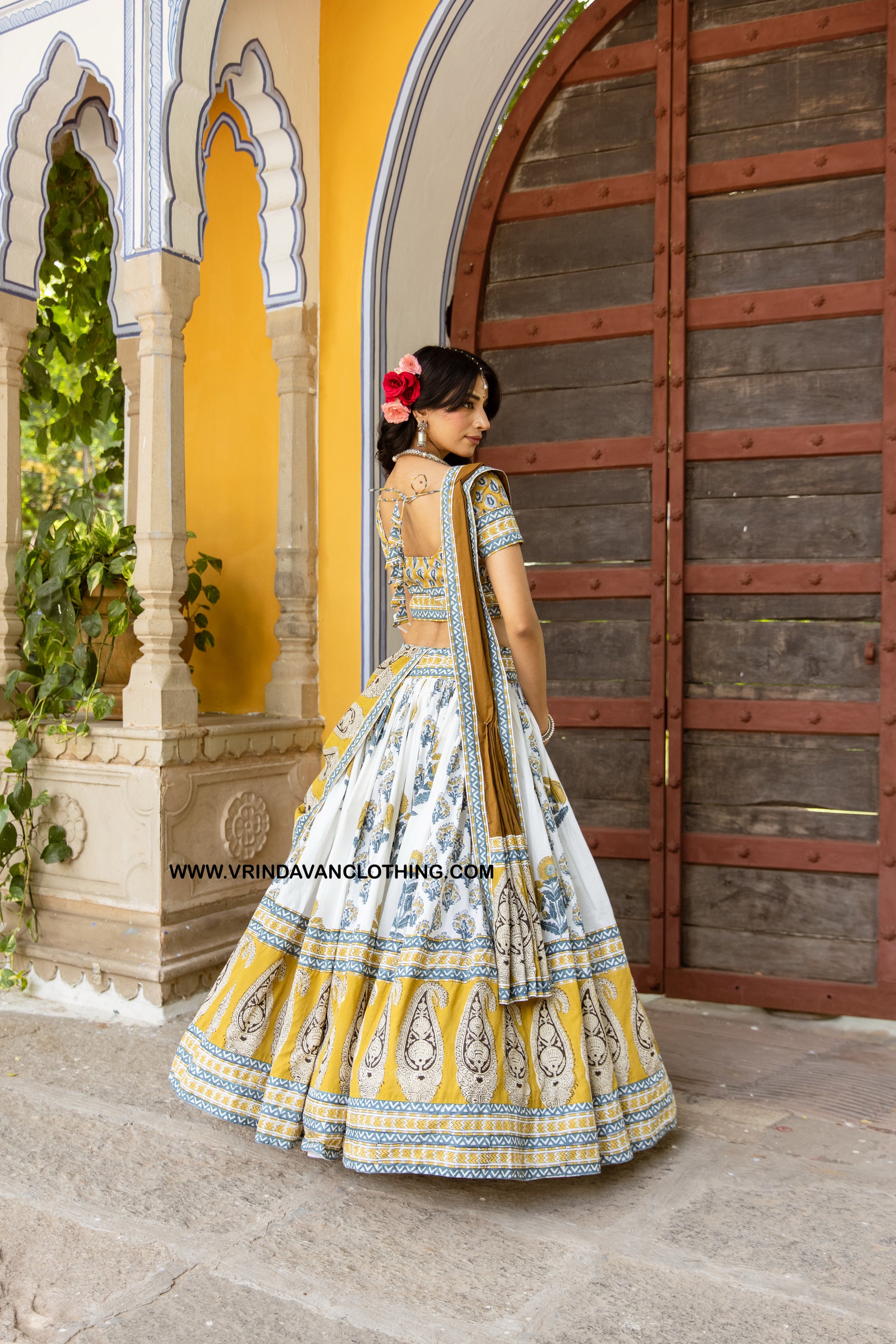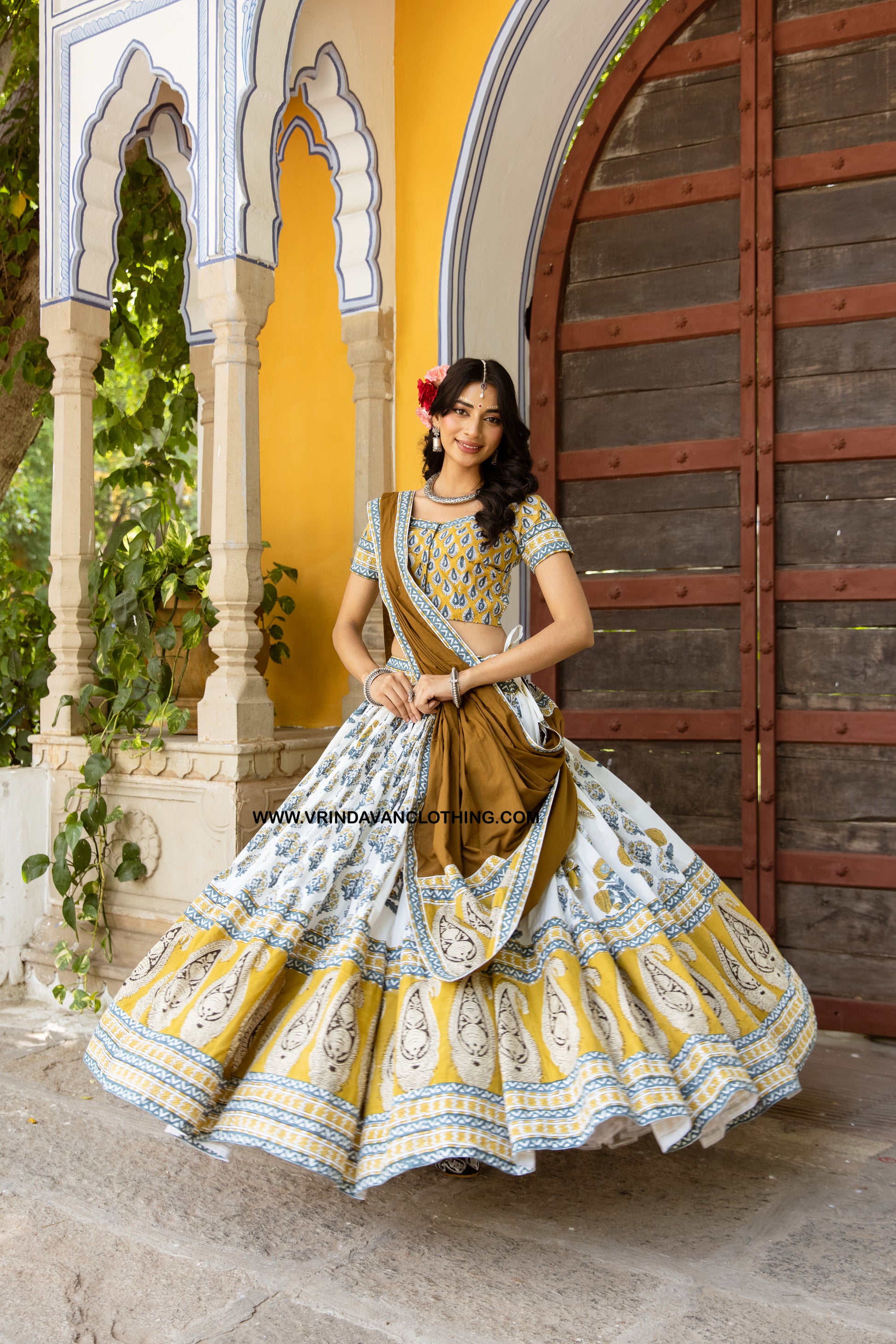 Immerse yourself in the divine elegance of our expertly handcrafted Gopi dress set, made from high-quality, breathable cotton for unparalleled comfort. Each piece is meticulously handmade and dyed, showcasing vibrant colors that radiate the joy and beauty of Krishna's love, perfect for elevating your Kirtan dance performance, spiritual gatherings, or everyday wear. As you adorn yourself in this stunning outfit, embody the divine feminine, embracing your inner Radha, and connect with the sacred land of Vrindavan, where love and devotion reign supreme. Let our enchanting Gopi dress set transport you to a realm of spiritual bliss, inner peace, and divine connection.