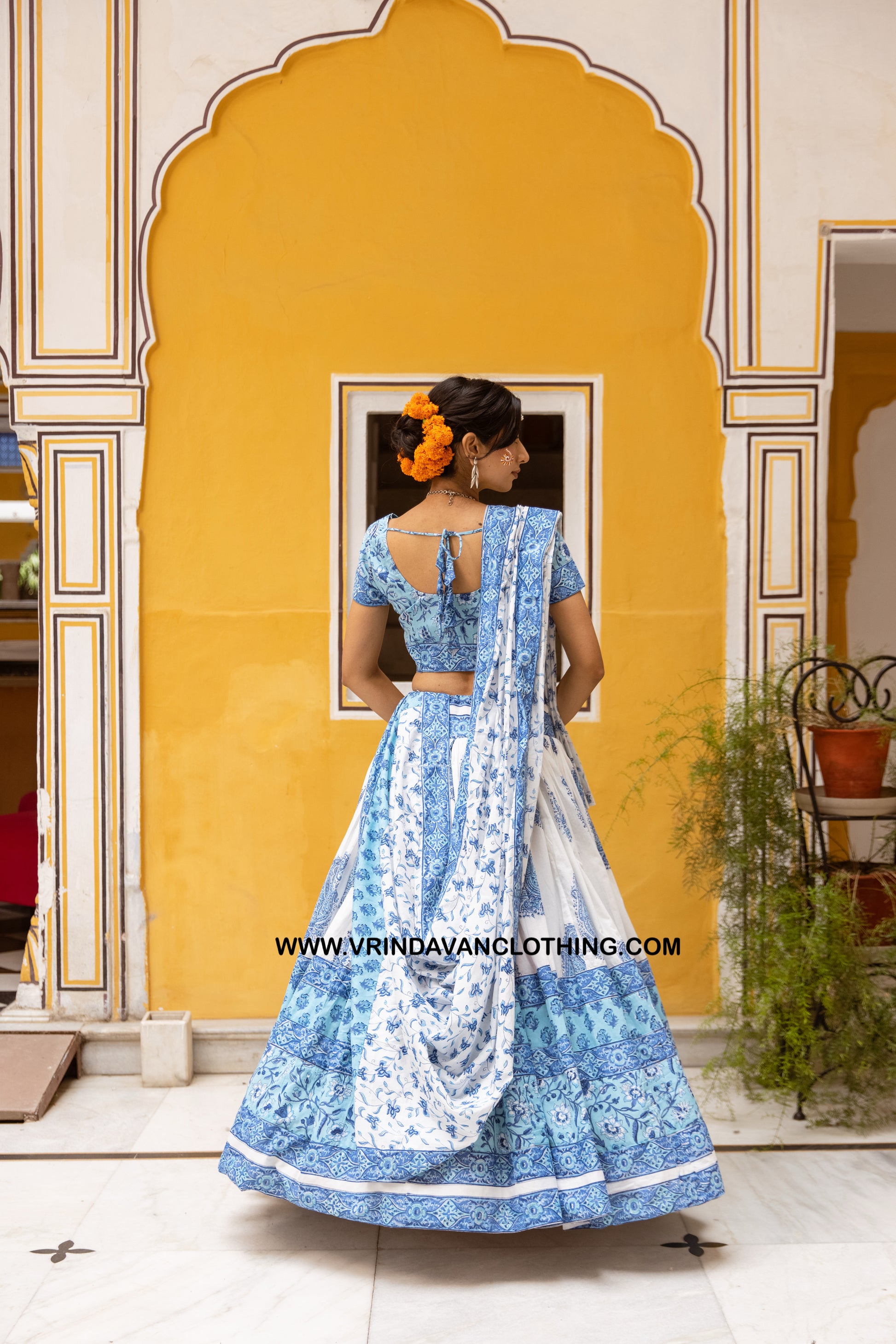 Immerse yourself in the divine elegance of our expertly handcrafted Gopi dress set, made from high-quality, breathable cotton for unparalleled comfort. Each piece is meticulously handmade and dyed, showcasing vibrant colors that radiate the joy and beauty of Krishna's love, perfect for elevating your Kirtan dance performance, spiritual gatherings, or everyday wear. As you adorn yourself in this stunning outfit, embody the divine feminine, embracing your inner Radha, and connect with the sacred land of Vrindavan, where love and devotion reign supreme. Let our enchanting Gopi dress set transport you to a realm of spiritual bliss, inner peace, and divine connection.